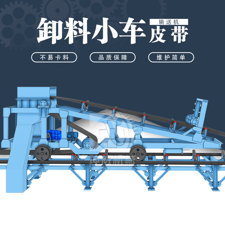 皮帶輸送機(jī)卸料小車在行走裝置上和可逆配倉(cāng)帶式輸送機(jī)相同,都是由行走輪以及輕軌組成。卸料裝置在皮帶輸送機(jī)上進(jìn)行行走。