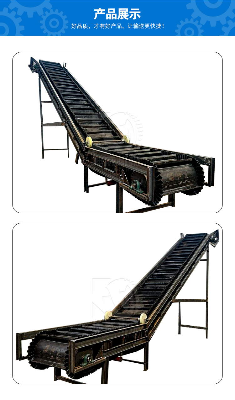 大傾角皮帶輸送機(jī) 依靠其特有的優(yōu)勢,在企業(yè)中的使用越來越普遍,在提升高度相同的情況下,所占地面和空間少,并且具有常規(guī)帶式輸送機(jī)的所有特點(diǎn),投資成本低,因而在生產(chǎn)運(yùn)輸